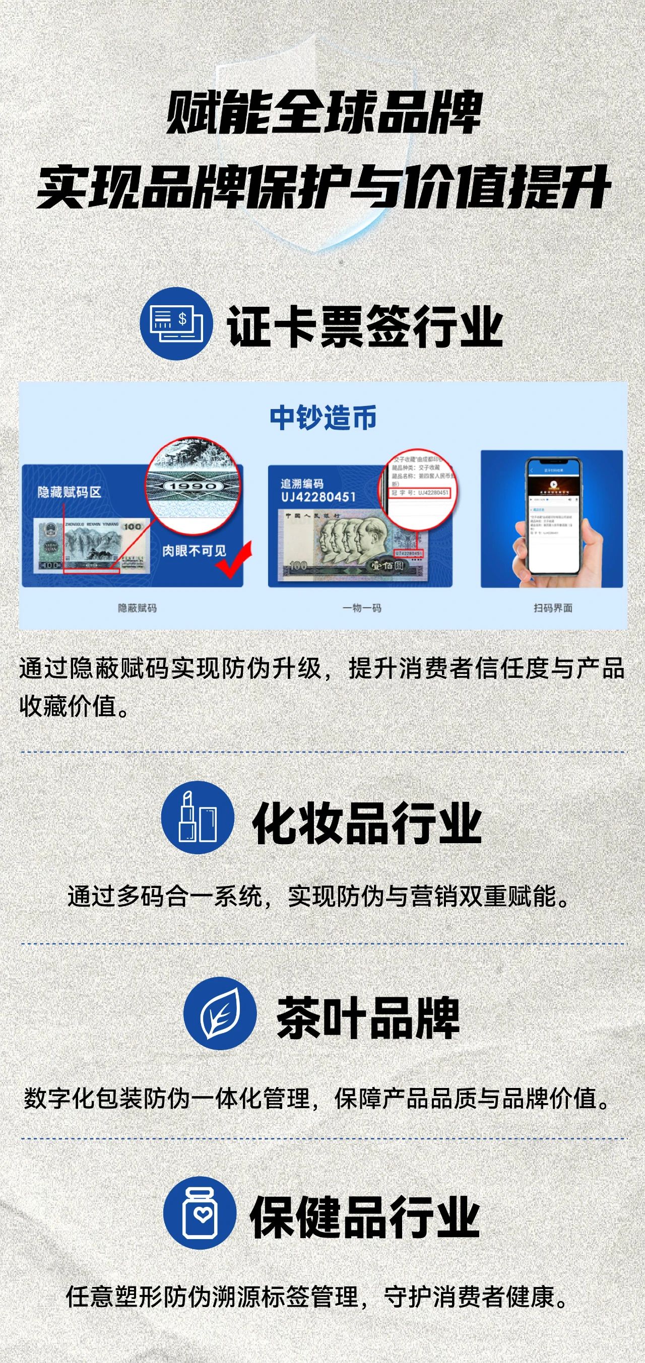 发展至今,量子云码已赋能1000多家国内外知名品牌企业,全球累计发码量超300亿,覆盖食品、药品、化妆品、汽配、文创IP、证卡票签等众多民生行业。